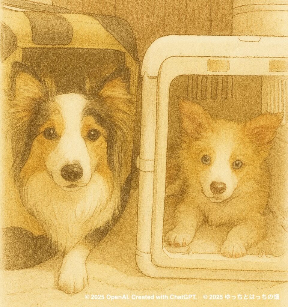 ゆっちが前足や鼻を上手に使って出てきてしまうので、はっちは羨ましくてよくクンクン鳴いてました。