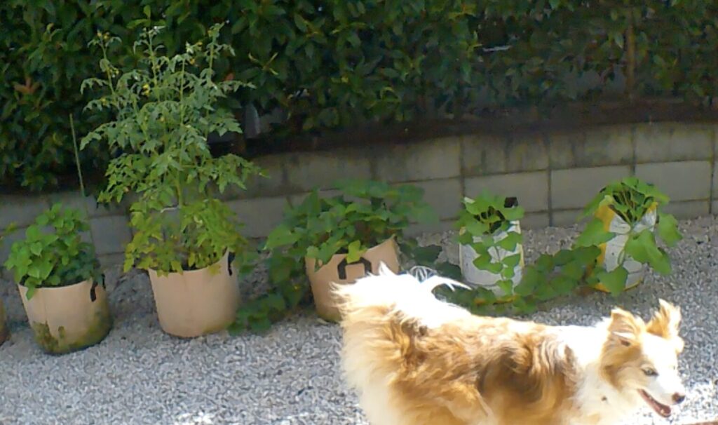 左からバジル・ミニトマト・さつまいも1・さつまいも2・さつまいも3